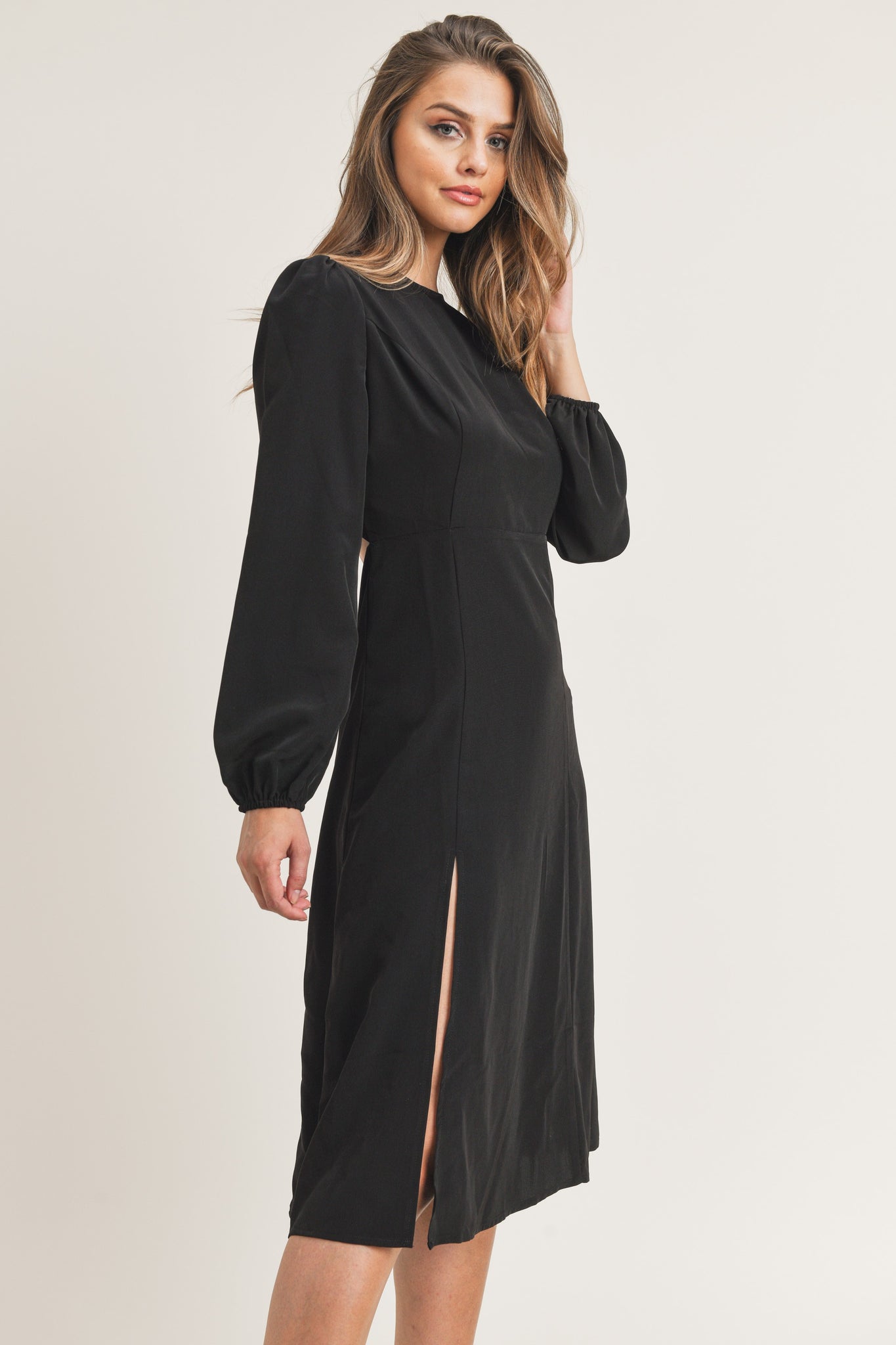 Details...-open back detail-bottom right slit-two buttons and hook & eye zipper back